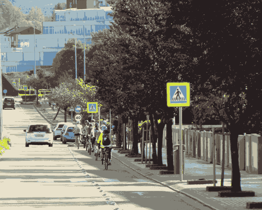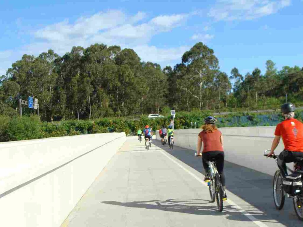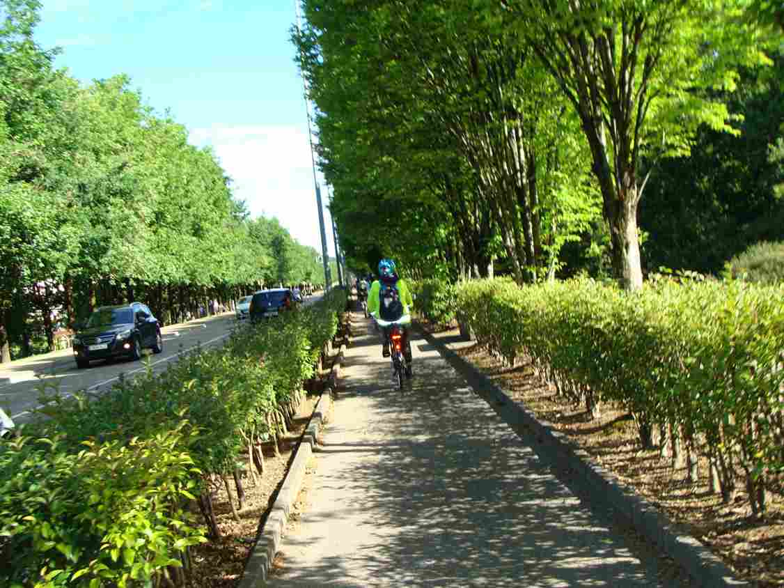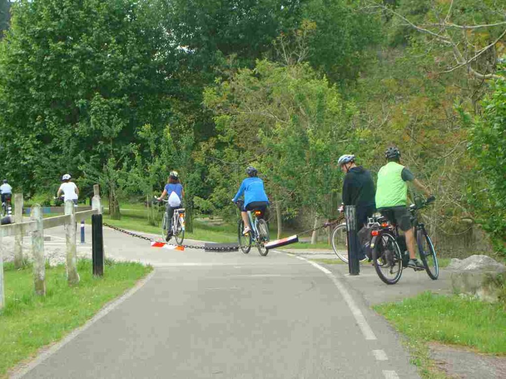 Esther González, nuestra urbanista Ingebiker nos fue presentando Torrelavega, su desarrollo y sus vías. Nunca nos cansamos de decirlo, circular por caminos separados para ciclistas, protegidos de la calzada y de la acera por vegetación, es una verdadera delicia. Cuando nos preguntamos cuales son la barreras a la movilidad ciclista siempre recordamos esta imagen.