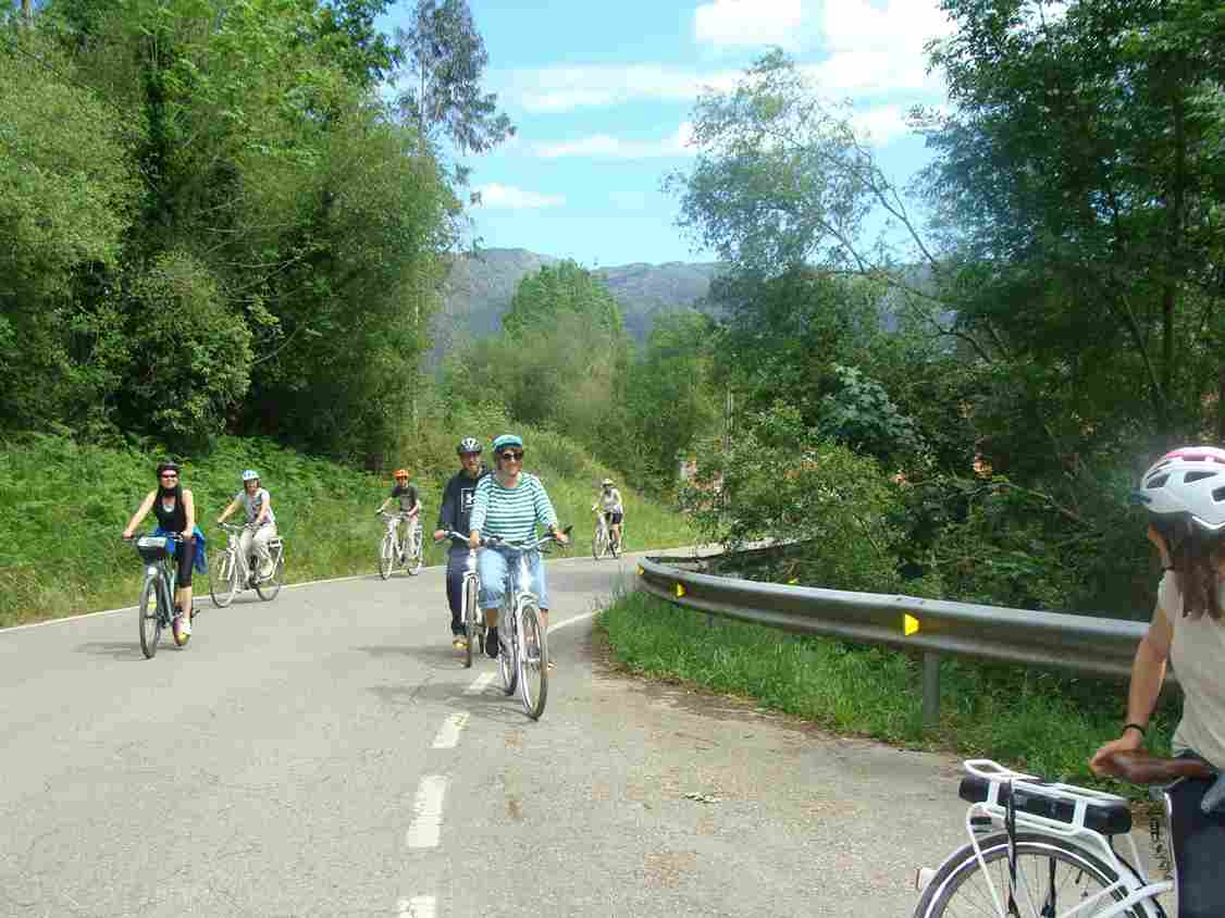 Al pasar por el balneario de las Caldas el paisaje nos sorprendía, es el balneario más antiguo de Cantabria y tendríamos que conocerlo, pero varios de los asistentes nos preguntaban, ¿Y este sitio? Nuevo resultado de Ingebike. Por cierto, nos chivó Esther que en este balneario falleció Ildefonso Cerdá, el mejor urbanista de la historia de España, (Ingeniero de caminos Ilustre, por cierto).